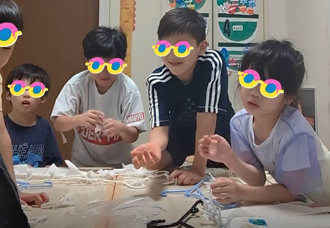 ②circle,triangle,square, rectangleを使ってオリジナルのロボットを作りました✨扇風機ロボットを作っているお友だちがいました。どうやつけるのかまで想像して作ったそうです✨